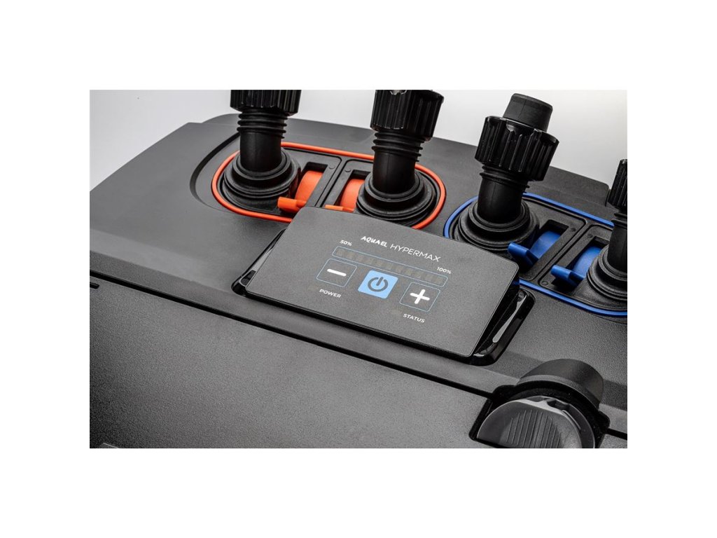 Hypermax má obrovskou filtrační kapacitu 15,9 litru. To spolu s nejúčinnějším, energeticky nejúspornějším a elektronicky řízeným čerpadlem na trhu určuje schopnost zvládnout akvária s velkým rozsahem objemů: od 200 až po celých 1500 litrů. Sada 2 vstupních a 2 výstupních hadic zajišťuje dostatečnou cirkulaci vody v celém akváriu, čímž účinně zabraňuje vzniku mrtvých zón.