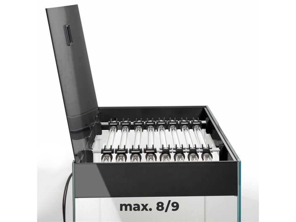 Kryt akvária je schopný nést až 9 LED zářivek Leddy Tube.
