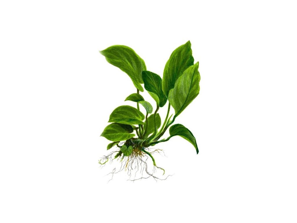 Anubias barteri var. caladiifolia pochází z australské laboratoře na rozmnožování tkání. Je to velmi krásná odrůda se srdčitými listy. Listy žijí několik let, takže Anubias barteri var. Caladiifolia může snadno vytvářet velké skupiny i přes svůj pomalý růst. Skupina Anubias barteri var. Caladiifolia, která v několika letech roste o šířce více než 50 cm, není neobvyklá.Žádaného růstu u této rostliny dosáhnete pokud rostlinu zasadíte popřípadě přivážete ke kořeni nebo kameni. Tuto rostlinku by jste nikdy neměli sázet do substrátu. Pokud by jste tomu tak udělali a zakryli hlavní stonek, tak by rostlina postupně strádala a uhynula.