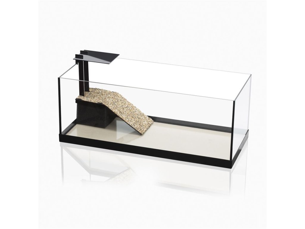 | Ideální domov pro vaše zvířata Vybavení terária AquaTerrarium obsahuje mnoho funkcí, které splňují potřeby budoucích obyvatel terária. Jednou z nejdůležitějších je protiskluzová plošina z přírodního štěrku, která vašim mazlíčkům umožní bezpečný výstup. Na nádrži je také stříška, která chrání zvířata před náhodným vypadnutím. |