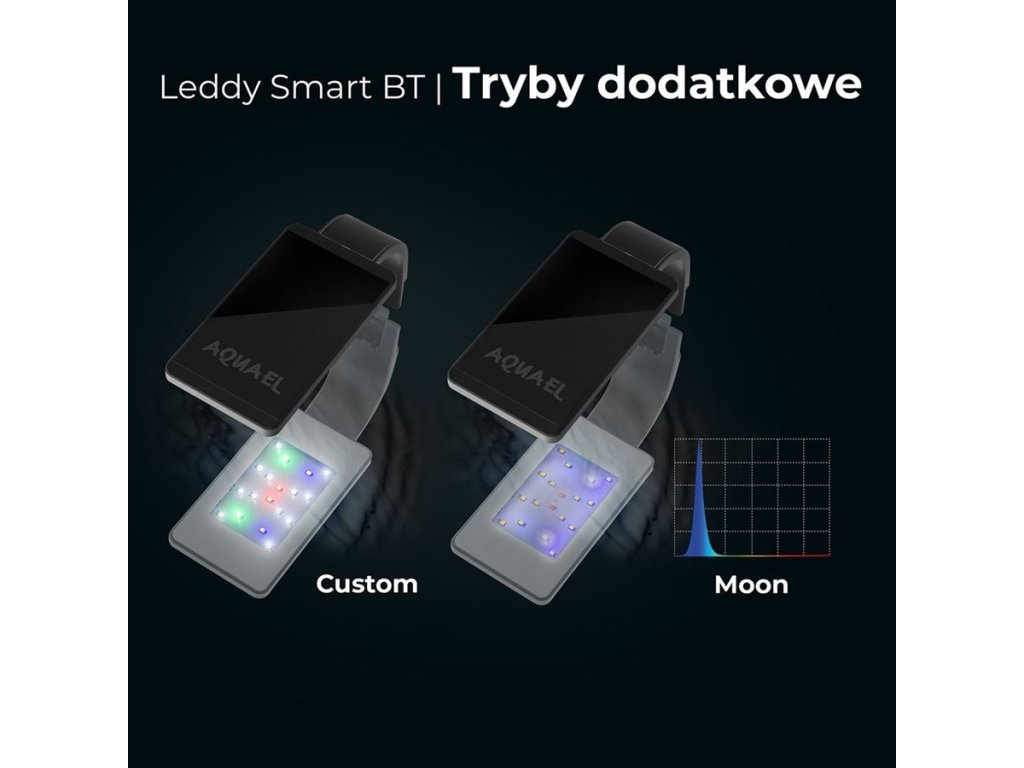 🌙 Noční režim Měsíční světlo – umožní sledovat noční život v akváriu bez rušení jeho obyvatel.