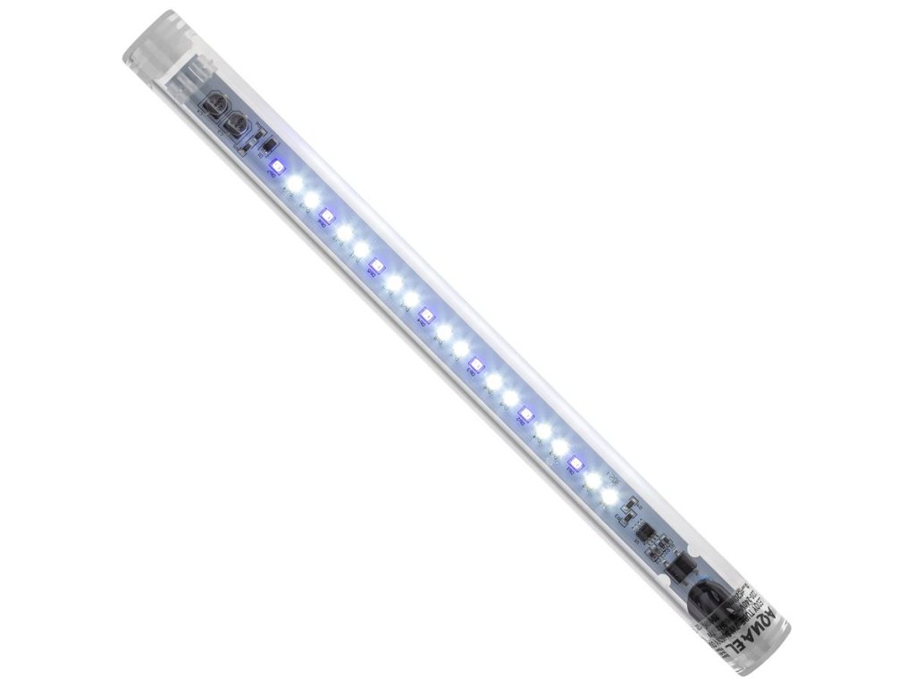 LEDDY TUBE 7W SUNNY D&N je určen k osvětlení sladkovodních akvárií. Obsahuje pečlivě vybrané LED diody, které zajišťují dokonalé osvětlení akvária a zaručují jeho obyvatelům vynikající životní podmínky. Lze jej instalovat do krytů a lamp Aquael. Díky použití přídavných adaptérů T5 / T8 jej lze nainstalovat také do jakéhokoli krytu nebo lampy určené pro tradiční akvarijní zářivky. Příslušenství DUBLED věšák umožňuje přidat k lampě nebo krytu přídavný modul a zvýšit tak osvětlení nádrže.Modul LEDDY TUBE 7W SUNNY D&N je vybaven funkcí Day & Night. Pracuje ve třech provozních režimech: DEN / DAYBREAK / NOC. DAY je základní a nejvýkonnější světlo pro osvětlení akvária během dne. DAYBREAK je snížený výkon denního světla na 50 % plus modré světlo. Funguje to dobře jako první režim po noci a při krmení ryb - zvláště pokud máte nervózní obsazení. NIGHT je modrá záře, která umožňuje jedinečné pozorování akvária po setmění, včetně ryb a zvířat s nočním životním stylem. Day & Night osvětlení krásně zobrazí uspořádání v akváriu ve dne i v noci a zútulní i interiér místnosti, ve které je nádrž umístěna. Provozní režim DEN / DAYBREAK / NOC se změní po vypnutí a zapnutí modulu spínačem do 5 sekund. Nejlepší je tento proces automatizovat pomocí moderního ovladače akvárií SOCKET DUO.