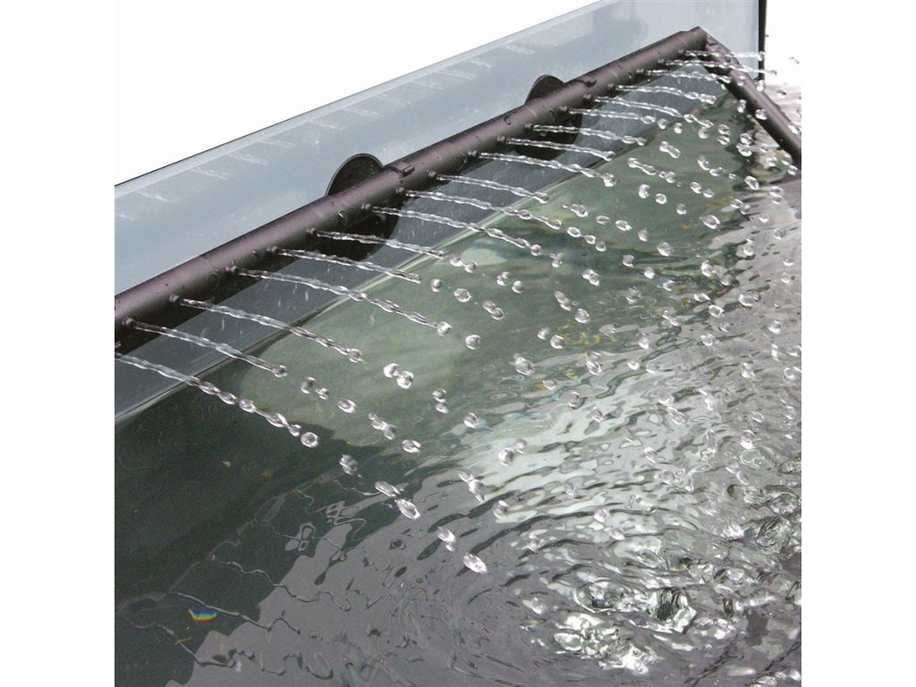 Akvarijní sprinklery pro rovnoměrnou distribuci vody vytékající z výstupních trubek filtru.