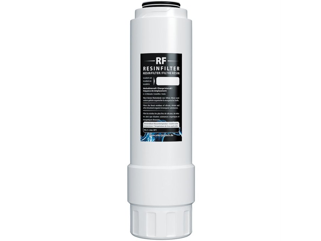 Pryskyřicový filtr ARKA myAQUA® 1900 je navržen jako poslední filtrační stupeň v systému reverzní osmózy. Díky kombinaci kationtové a aniontové pryskyřice (v poměru H⁺ : OH⁻) účinně odstraňuje i nejjemnější zbytky dusičnanů, křemičitanů a dalších rozpuštěných organických a anorganických látek (TDS).