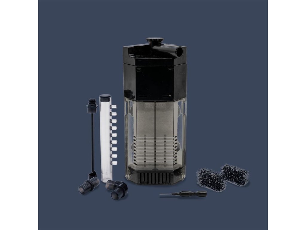 Tento rohový filtr nabízí plynule nastavitelný průtok vody (až 150 l/h) a otočný výstup o 90°, díky čemuž si proud vody přizpůsobíte podle potřeby. Díky velmi jemnému předfiltru je bezpečný i pro nejmenší krevetky. Je navržen tak, aby fungoval tiše, s minimální spotřebou energie (pouze 2 W). Údržba je rychlá a čistá – filtr stačí snadno vytáhnout a vypláchnout ve vodě z akvária.