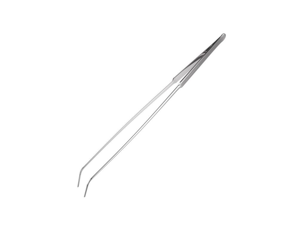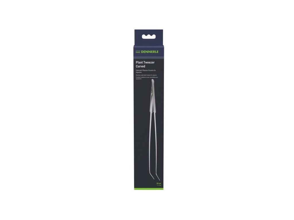 DENNERLE Zahnutá sazecí pinzeta je zakřivená pinzeta navržená pro práci v místech, kde si rovné nástroje neporadí – mezi kameny, kořeny nebo v zadních částech nádrže. Díky délce 30 cm umožňuje pohodlné sázení i v hlubších akváriích, aniž byste museli ponořovat ruce do vody. Jemně rýhovaná špička zajišťuje spolehlivý úchop i u jemných druhů, které by jinak mohly vyklouznout. Vysoce leštěná nerezová ocel odolá vlhkosti a zachová si elegantní vzhled po dlouhou dobu.