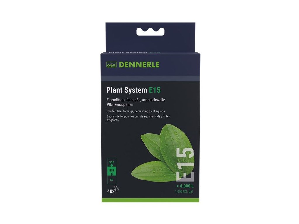 Je pro všechny akvarijní rostliny nepostradatelné. Bez železa neprobíhá v rostlině fotosyntéza. Pokud chybí železo, poznáte to snad-no: listy jsou žluté a sklovité, hlavně mladé listy jsou zasa-ženy. Rostliny mohou spotřebovat pouze dvojmocné železo, které se bohužel v akváriu špatně udržuje, protože rychle zoxiduje a změní se na trojmocné. Proto jsou rostliny závislé na pravidelném hnojení. E15 dodává akváriu rychle a nekomplikovaně potřebné železo. Rostliny jsou viditelně zelenější a listy mají správný tvar a zbarvení. Hnojivo je vyro-beno tak, aby se dlouho udrželo ve stavu pro rostliny spotře-bovatelném. Neobsahuje fosfáty ani nitráty, tedy nepodpo-ruje růst řas.