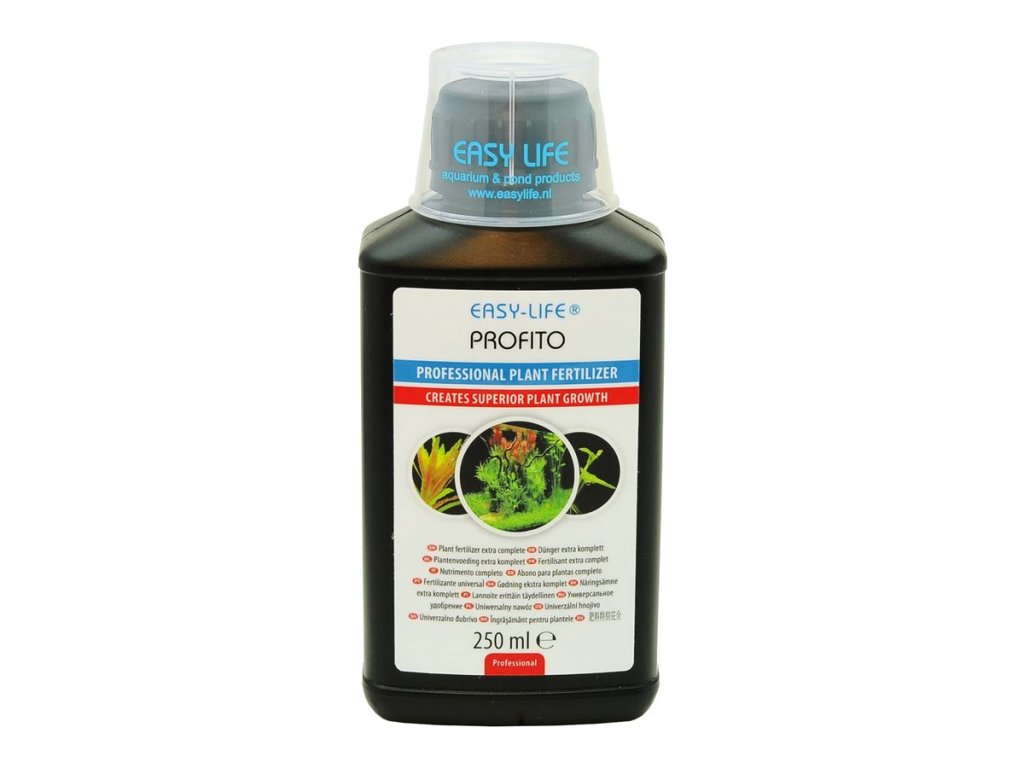 PROFITO je kompletní hnojivo pro akvarijní rostliny. Je vysoce koncentrované a díky svému složení zajišťuje kompletní výživu rostlin ve Vašem akváriu. Obsahuje železo, draslík, hořčík, mangan, kobalt, molybden, měď, jód, zinek a phytohormony, potřebné pro zdravý růst rostlin.Proč hnojit hnojivem Easy-Life Profito?