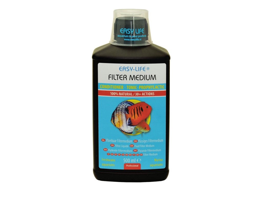 Easy-Life Filter Medium je jedinečný 100% přírodní přípravek, který čistí vodu, podporuje růst rostlin, zvyšuje vitalitu ryb a eliminuje stres i škodlivé látky. Funguje ve sladkovodních i mořských akváriích, rybníčcích a je ideální při údržbě, zakládání akvária, transportu ryb i léčbě. Bez chemie, bez rizika, s maximální účinností.