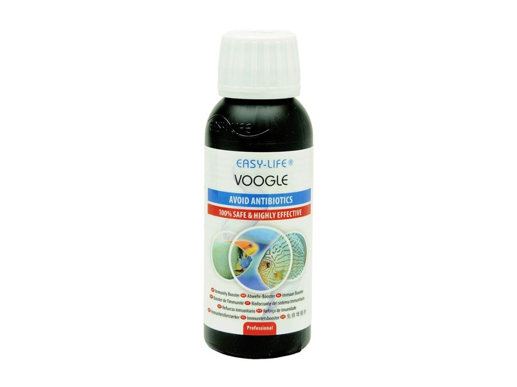 Easy-Life Voogle je inovativní a bezpečný přípravek, který podporuje přirozený imunitní systém ryb a napomáhá jejich hojení – bez použití antibiotik. Díky složení na bázi rostlinných extraktů, vitamínů a minerálů posiluje obranyschopnost, zlepšuje kondici a pomáhá rybám zvládat stresové situace, přepravu nebo karanténu. Je šetrný ke všem obyvatelům akvária, rostlinám i biofiltru a nemění parametry vody.