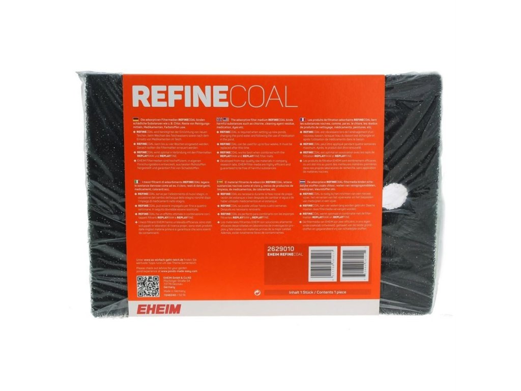 RefineCoal je vysoce účinné adsorpční filtrační médium, navržené speciálně pro jezírkové filtry Loop 5000 a Loop 7000. Tento filtr pomáhá udržet čistou a zdravou vodu tím, že účinně odstraňuje škodlivé látky, jako je chlór, zbytky detergentů, léků, barviv a další nečistoty.
