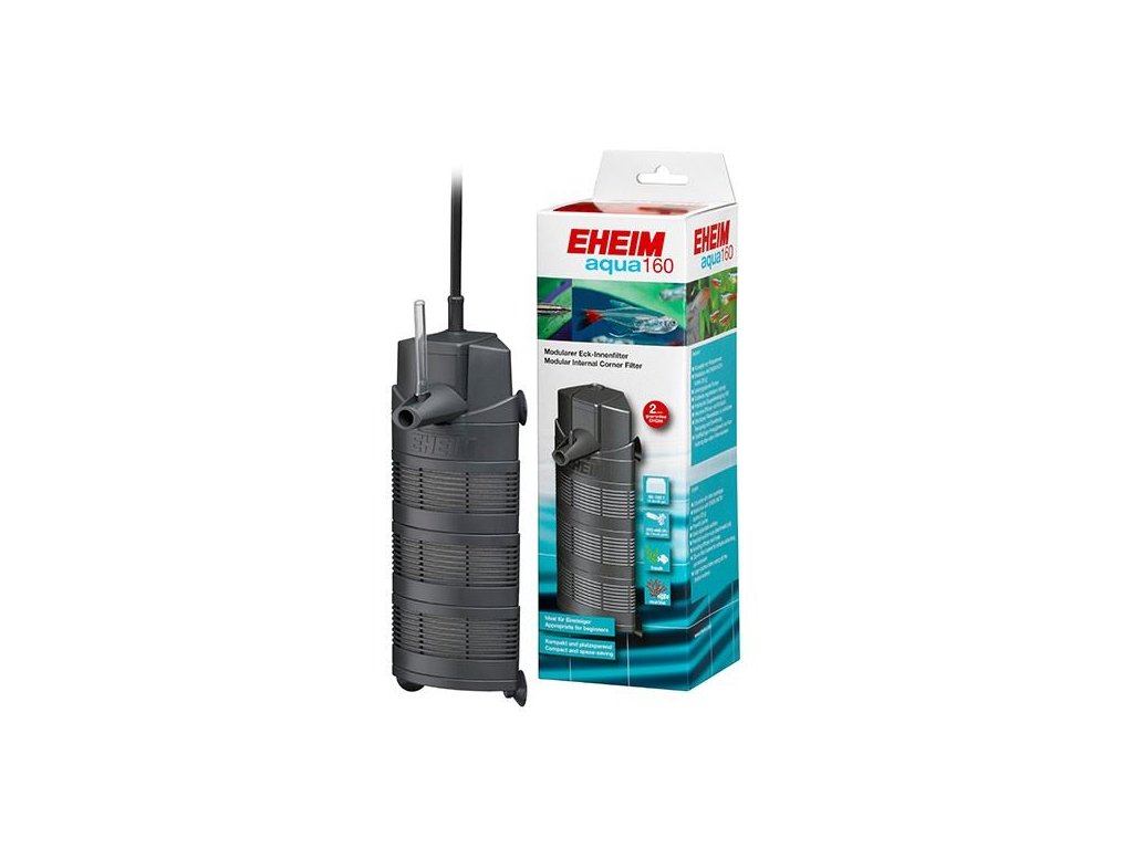 EHEIM aqua je velmi snadno použitelný vnitřní filtr pro malá až středně velká akvária. Ideální pro začátečníky, je jednoduše připevněna k rohu nádrže přísavkami. Díky své kompaktní velikosti zabírá v akváriu minimální prostor a ponechává dostatek prostoru pro akvascaping. Výkonné čerpadlo a velká sací plocha zajišťují účinnost a výkon lze snadno nastavit tak, aby reguloval jak průtok vody, tak i pohyb povrchu. Difuzor navíc obohacuje vodu kyslíkem. Hlavním rysem je však modulární konstrukce: Filtrační nádoby lze snadno vyjmout pro čištění a pokud chcete zvýšit kapacitu filtru, můžete ji rozšířit o další moduly nádob.