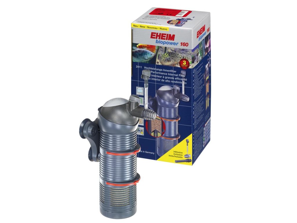 Vysoce výkonný vnitřní filtr s keramickou osičkou, včetně originálních Eheim filtračních médií pro biologickou filtraci.