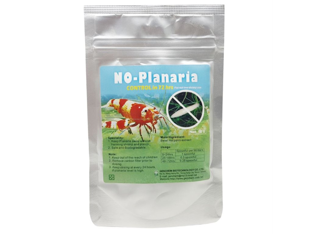 Genchem No Planaria je osvědčený přírodní přípravek pro rychlé a bezpečné odstranění ploštěnek z akvárií a krevetárií. Díky účinné látce z betelové palmy spolehlivě eliminuje parazity během tří dnů, aniž by poškodil krevetky, rostliny nebo prospěšné bakterie. Zachovává stabilní parametry vody a šetrně obnovuje rovnováhu v nádrži.