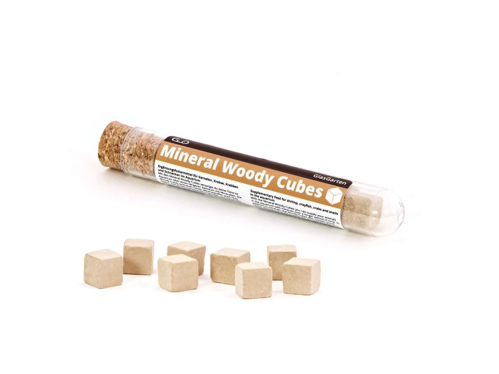 - Minerály obsažené v Mineral Woody Cubes se postupně uvolňují do vody v akváriu a mohou tak zlepšit mikrobiologii ve filtru a substrátu. Minerály jsou důležité pro úspěšné svlékání u krevet, krabů a raků a proti důlkové tvorbě v ulitách šneků. Šneci také používají minerály k opravě jakéhokoli existujícího poškození ulity.