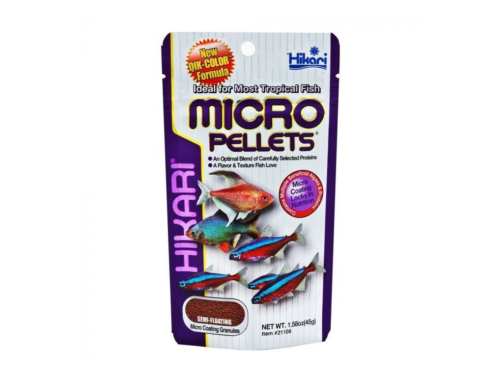 Krmivo se vyrábí s využitím nejmodernějších biotechnologických procesů a dodává tropickým rybkám celoročně zářivé zbarvení. Je složeno ze tří druhů pelet, každé s rozdílným obsahem a složením: Červené granulky: jsou výhradně živočišného původu, špičkového složení a obsahují dokonale vyvážený poměr aminokyselin. Zelené granulky: jsou rostlinného původu s vysokým obsahem dietní vlákniny, která podporuje zdravý vývoj ryb. Žluté granulky: obsahují vitamíny a minerály, které aktivují imunitní systém rybek a tím snižují riziko onemocnění. Napomáhají i snižování hladiny stresu. Hikari Micro Pellets je krmivo plovoucí, pomalu klesající, vhodné pro všechny druhy ryb živící se těsně pod hladinou či ve střední části akvária. Nikdy nekalí vodu! Každá miniaturní granulka je pokryta tenkou mikrovrstvou, která chrání výživné složky uvnitř tak, aby se při rozpouštění nevytratily.Firma Kamihata Fish Industries