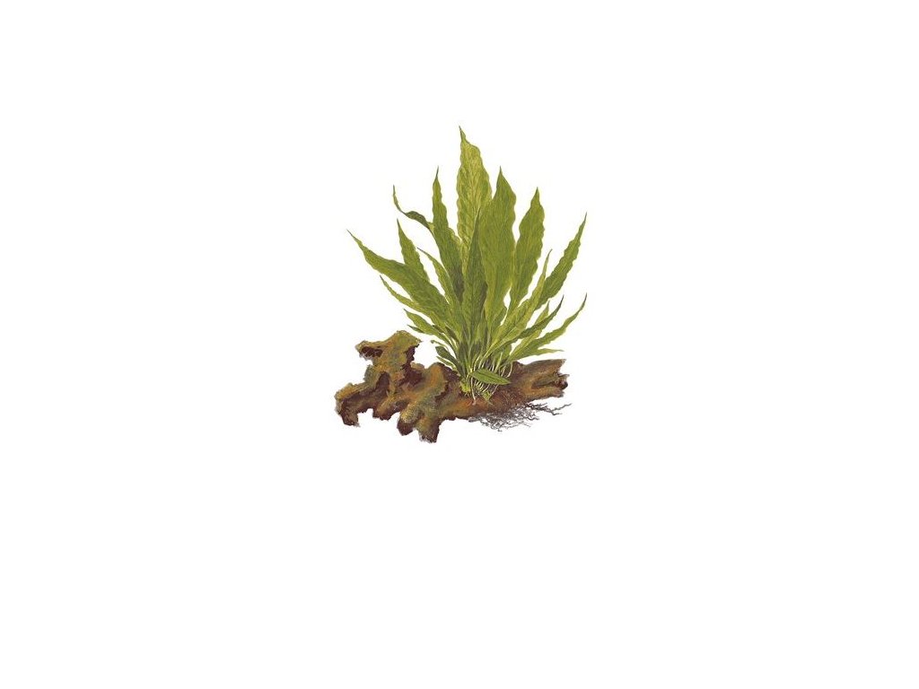 Microsorum pteropus, známý také jako Jávský kapradiník, je odolná vodní kapradina pocházející z Asie. Je připraven k okamžitému použití. Dorůstá výšky 15–30 cm a skvěle se hodí do středních i větších akvárií. Vyžaduje připevnění na kořen nebo kámen – nikdy nezahrnujte oddenek do substrátu, jinak hrozí hniloba. Černé tečky na spodní straně listů jsou sporangia (reproduktivní orgány) – nikoli nemoc. Snadné množení dělením oddenku.
