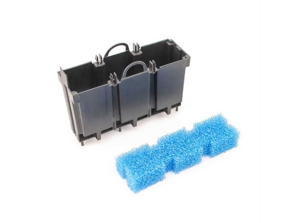 V kaskádovém filtru FZN PRO plní funkci předfiltru jemné prvky z hrubé filtrační houby. Jejich válcový tvar umožňuje optimální využití filtrační plochy a také odpovídajícím způsobem vyplňuje koš. Houby by měly být umístěny v nádobě umístěné pod ovládacím knoflíkem.