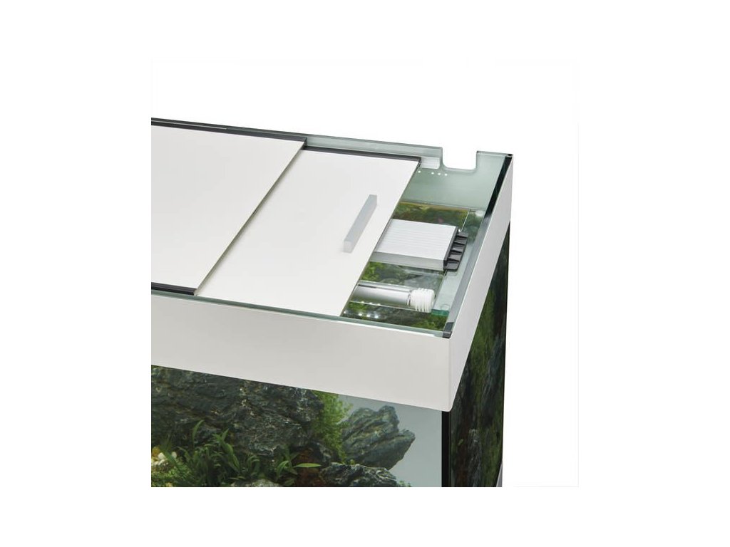 Stylové krytí: Přístup do akvária je řešený 2 matnýmy skly, které jsou umístěný v posuvných drážkách.
