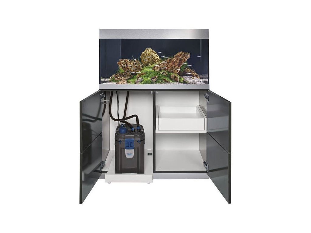Jednoduchá instalace: Stabilní kovové nohy jsou kdykoliv snadno přístupné přes vnitřek skříňky. Zajišťují bezpečnou a optimální stabilitu akvária