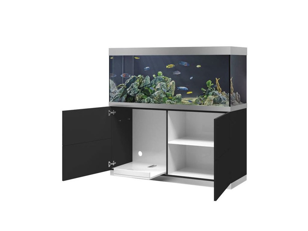 Jednoduchá instalace: Stabilní kovové nohy jsou kdykoliv snadno přístupné přes vnitřek skříňky. Zajišťují bezpečnou a optimální stabilitu akvária