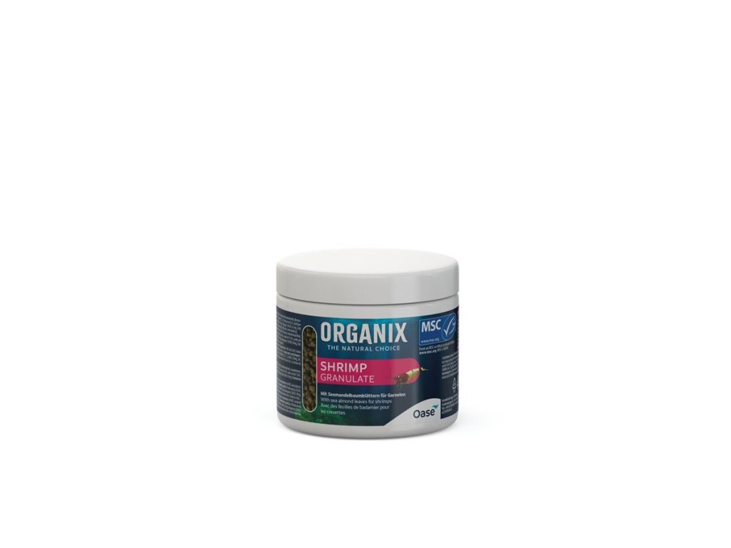 Velké kusy granulí v Organix Shrimp Granule odpovídají preferencím krevet a slibují rychlé potopení. To umožňuje živočichům žijícím na dně, aby se mohli krmit bez stresu.Pečlivě navržené složení obsahuje vodní bílkoviny, rostlinné stavební bloky a další složky specifické pro krevety. Optimalizováno speciální směsí řas. Vápník může přispět k podpoře silného krunýře a celkového vývoje krevet. Obzvlášť lahodnou chuť dodává 10 % vrcholáku pravého (Terminalia catappa).