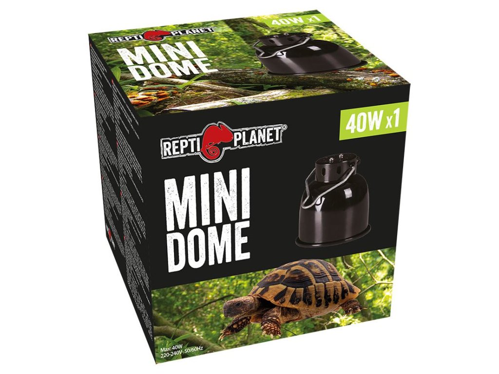 Mini Dome lampa s keramickou objímkou a hliníkovým reflektorem je ideální volbou pro menší terária. Umožňuje použití bodových žárovek do 40 W a vytváří lokální výhřev i světelné zóny. Kompaktní konstrukce umožňuje snadnou instalaci přímo na sítový kryt terária nebo s použitím originálního držáku (není součástí balení).