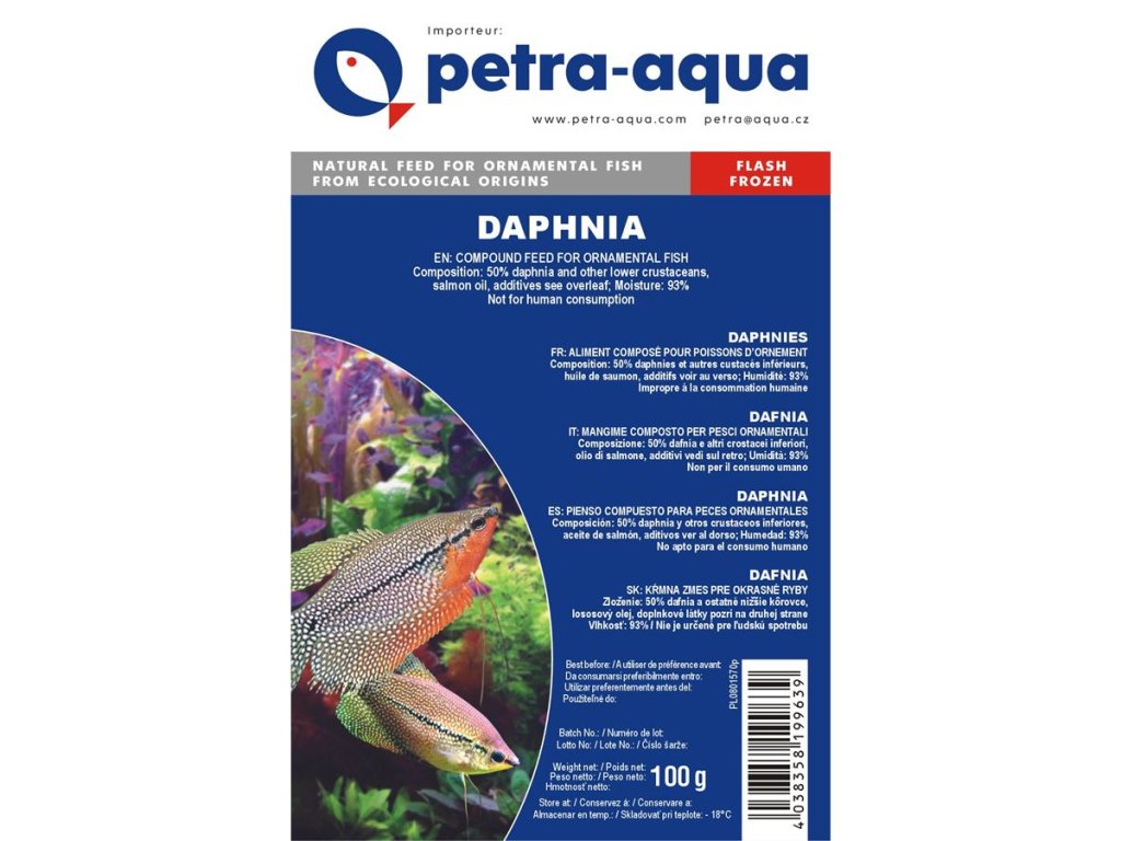 - Dafnie jsou bohaté na vlákninu, což podporuje správné trávení a pomáhá předcházet zažívacím potížím u ryb.