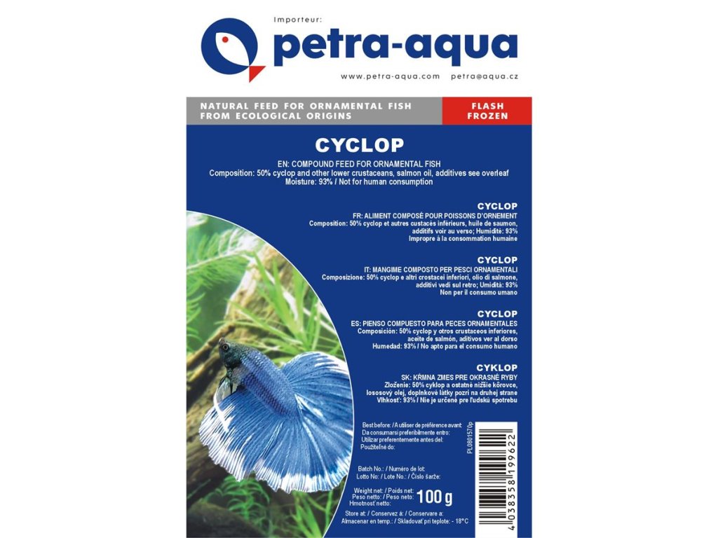 Díky těmto vlastnostem je Cyklop vynikajícím přírodním krmivem, které podporuje zdraví, barvu a růst akvarijních ryb.