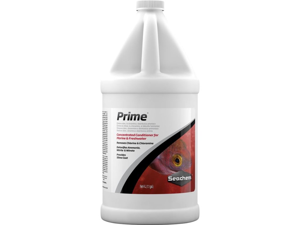 Seachem Prime je vysoce koncentrovaný přípravek na úpravu vody, který okamžitě upravuje kohoutkovou vodu tak, aby byla bezpečná pro akvarijní obyvatele. Kromě běžného odstranění chlóru neutralizuje i nebezpečný amoniak, dusitany a dusičnany. Navíc podporuje tvorbu ochranného slizu ryb a chrání je před stresem.