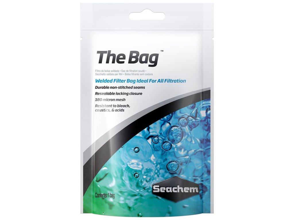 Potřebujete spolehlivý filtrační sáček pro média jako Purigen®, CupriSorb™ nebo PhosGuard™? The Bag™ od Seachemu je špičkové řešení – svařovaný, odolný proti chemikáliím a znovupoužitelný. Oproti běžným šitým sáčkům vydrží i agresivní prostředí při regeneraci filtračních médií a zachovává svou pevnost a tvar.