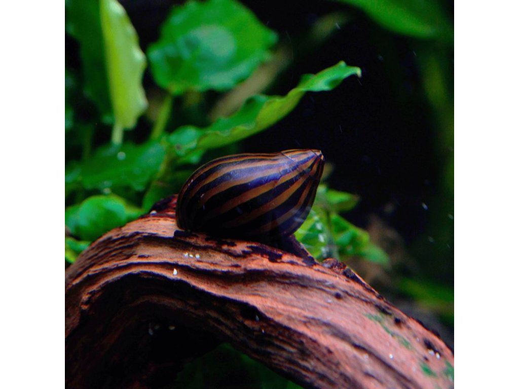 Znám také jako zebří šnek, je oblíbený akvarijní šnek pocházející z tropických oblastí Afriky. Jeho skořápka je výrazná a atraktivní, s černými a žlutými pruhy, které připomínají vzor zebry. Tento šnek je velmi ceněn pro své schopnosti udržovat akvárium čisté, protože se živí řasami, které škrábe z povrchu skel, kamenů a rostlin.