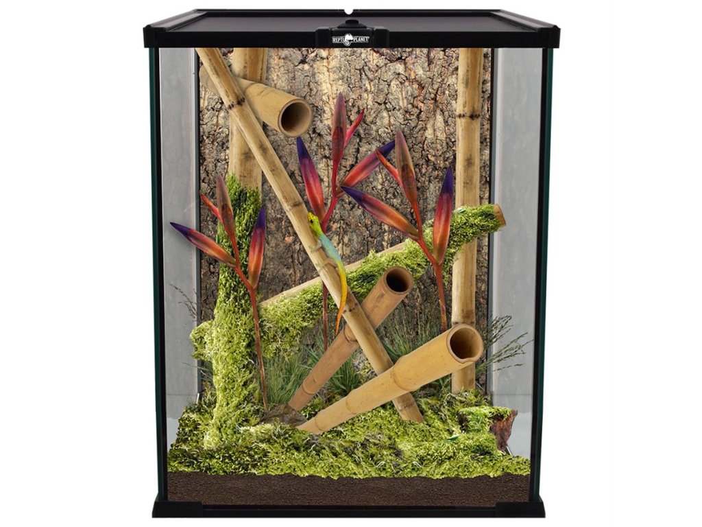 Celoskleněné terárium Repti Planet je ideální volbou pro chov různých druhů terarijních zvířat, od plazů přes obojživelníky až po bezobratlé. Díky pečlivému zpracování, kvalitním materiálům a chytrému designu můžete vytvořit dokonalé exotické prostředí v uzavřeném mikroklimatu, ideální pro malé druhy zvířat a rostlin.