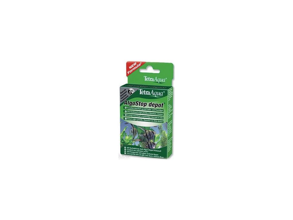 Tetra AlgoStop depot je ideální prevencí proti všem druhům řas ve sladkovodních akváriích od 40 litrů výše. Díky depotní formě se účinná látka uvolňuje pomalu a rovnoměrně po dobu přibližně 4 týdnů. Při správném použití je bezpečný pro ryby, rostliny i mikroorganismy a nezpůsobuje zabarvení vody.