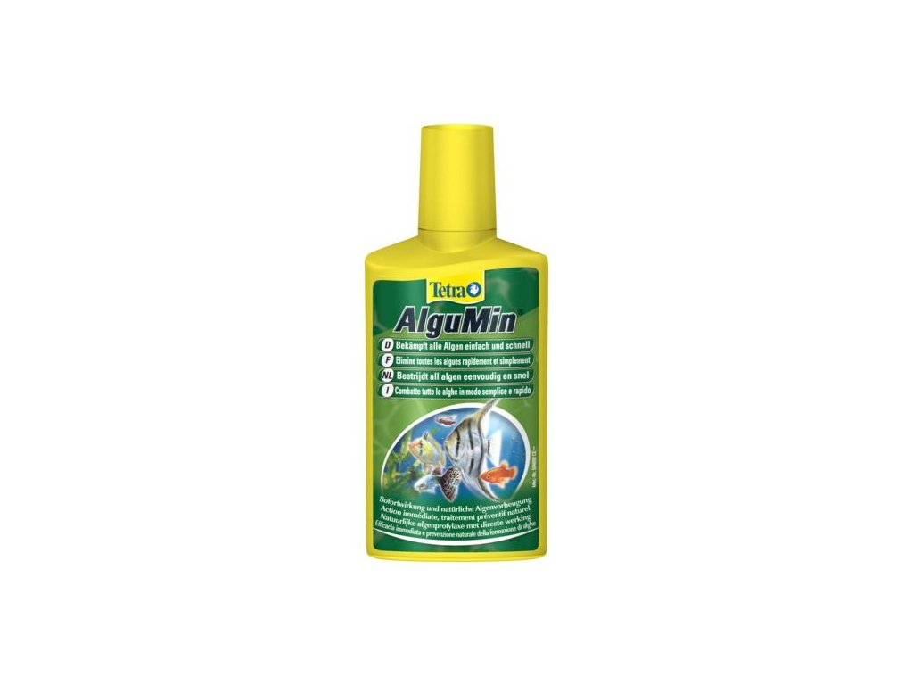 Tetra AlguMin je tekutý přípravek, který účinně působí proti všem typům řas. Díky okamžitému uvolnění účinné látky a jejímu rychlému rozptýlení v akvarijní vodě poskytuje rychlou a efektivní ochranu. Při správném použití je šetrný ke všem obyvatelům akvária – rybám, rostlinám i prospěšným mikroorganismům.