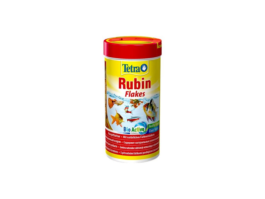 Základní krmivo obsahující látky, které podporují přirozené zbarvení, pro každodenní krmení všech akvarijních ryb. Tato prvotřídní směs vloček se složkami posilujícími zbarvení zlepšuje přirozené živé zbarvení ryb.Proč krmit krmivem Tetra Rubin?
