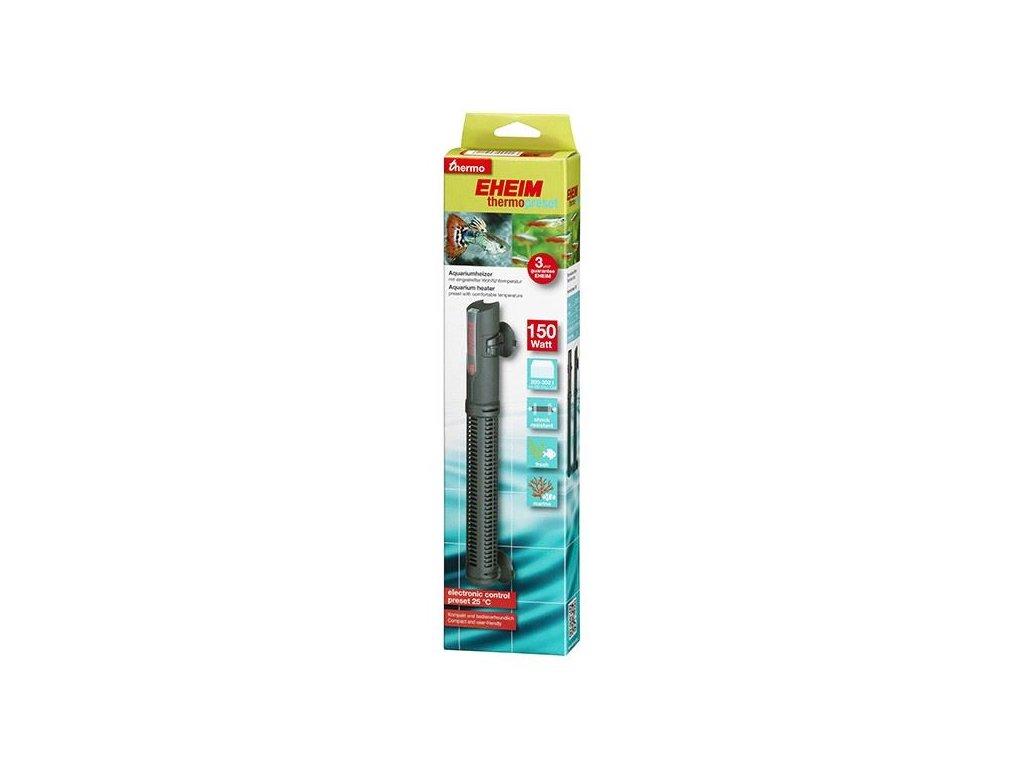 Jednodušší už to být nemůže: s EHEIM Thermopreset je přednastavena příjemná teplota pro obyvatele akvária. Vaše akvárium si udrží konstantní teplotu 25 stupňů Celsia. To je také optimální teplota pro chov nejběžnějších obyvatel akvária. Elektronická regulace zaručuje mimořádně vysokou přesnost / správnost teploty, vysoce účinné topné těleso zajišťuje rovnoměrné rozložení tepla.EHEIM Thermopreset se od EHEIM Thermocontrol liší dodatečnou plastovou ochranou, která zajišťuje vysokou mechanickou stabilitu. Jak je u společnosti EHEIM obvyklé, oba ohřívače jsou vybaveny LED kontrolkou pro kontrolu funkce ohřevu a ochranou proti chodu nasucho.
