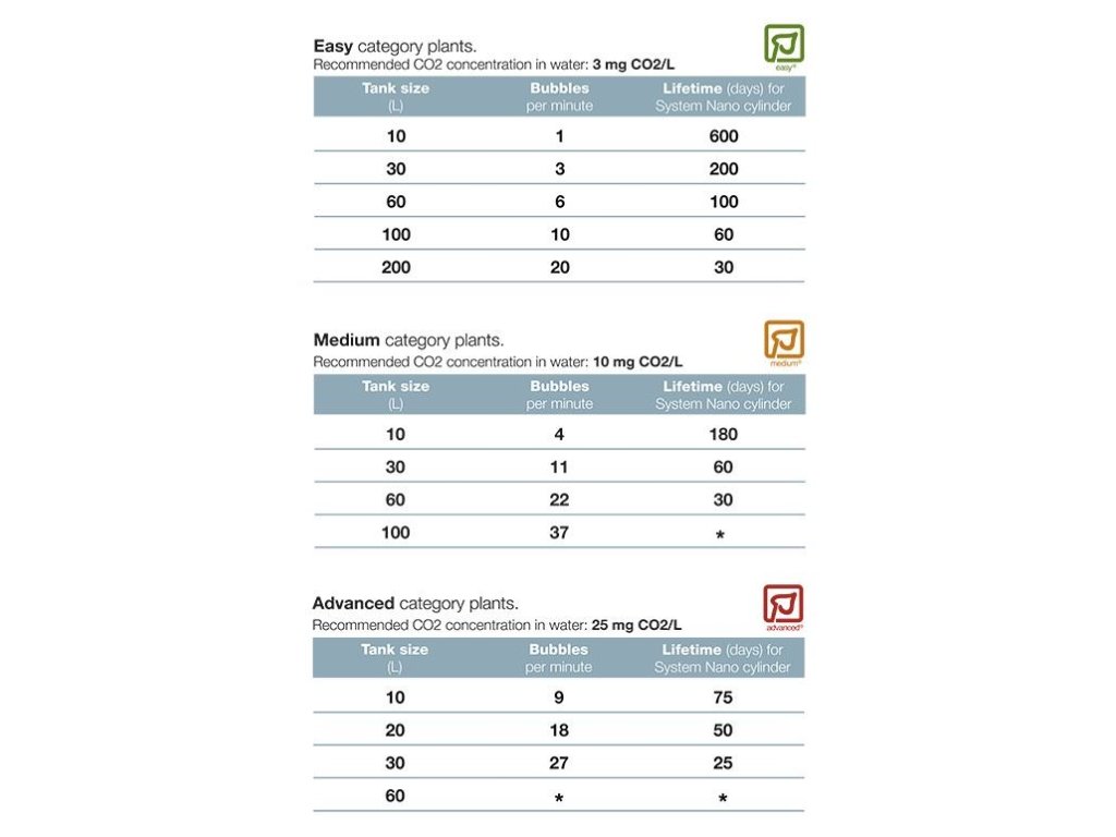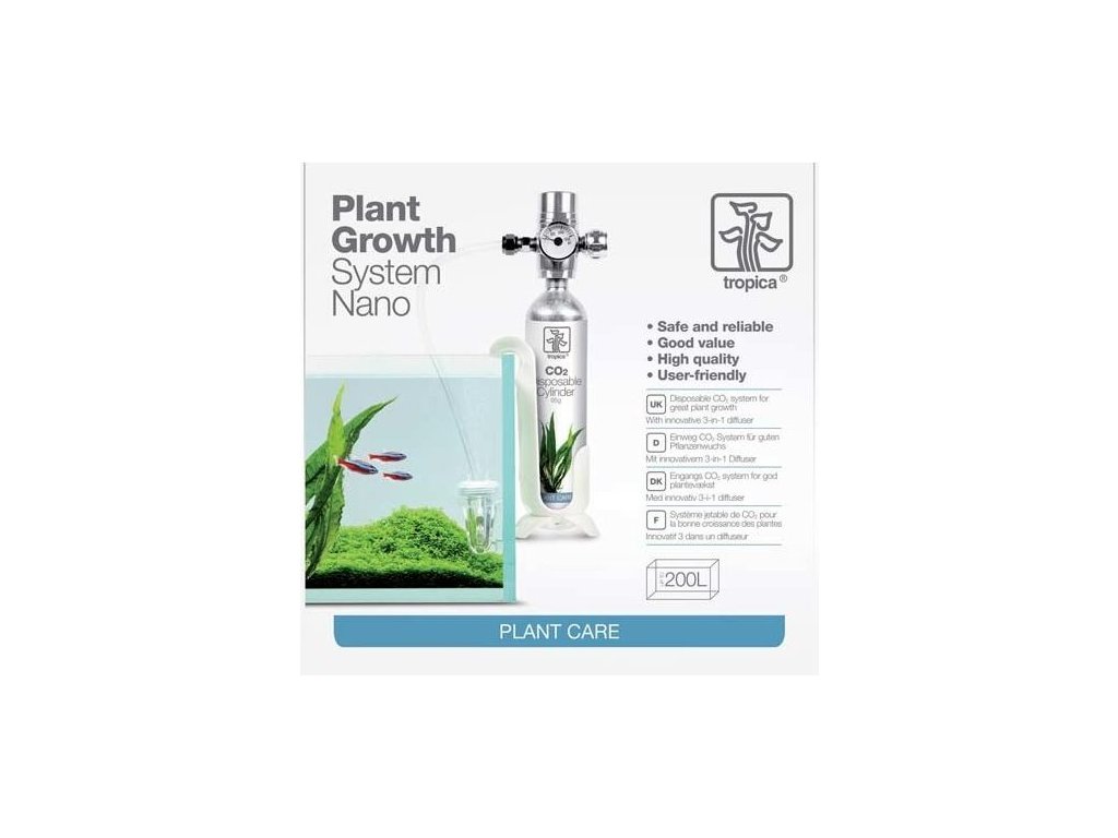 Pro zajištění krásného a silného růstu akvarijních rostlin by měla být také malá akvária zásobována CO2. Pro tato malá akvária není každopádně vhodná běžná CO2 akvarijní technika. S redukcí tlaku určenou pro větší akvária se totiž většinou nedá dobře nastavit potřebný, jen minimální přídavek CO2 v množství několika bublinek za minutu. Tento problém však řeší nový systém dávkování CO2 od firmy Tropica.Obsah balení: