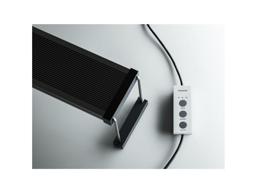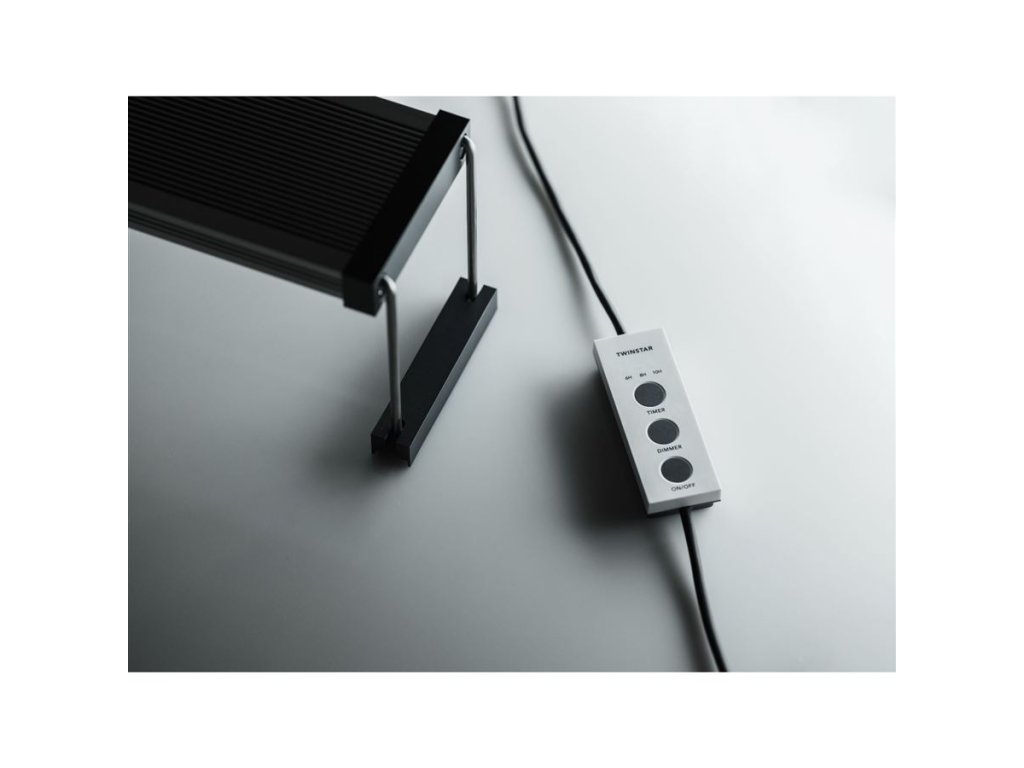 | Stmívač TWINSTAR Praktický stmívač pro nastavení základních funkcí: Intenzita: 7 stupňů intenzity Doba svícení: 6-8-10 hodin Rozednívání: Automaticky 10 min ON - 10 min OFF Tlačítko: ON/OFF Stmívač je připojený přímo k osvětlení. Vzádálenost mezi stmívačem a osvětlením je 35 cm | ![]() |